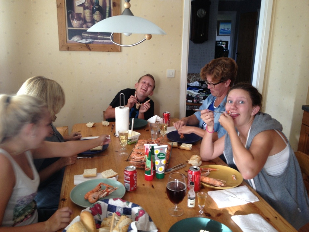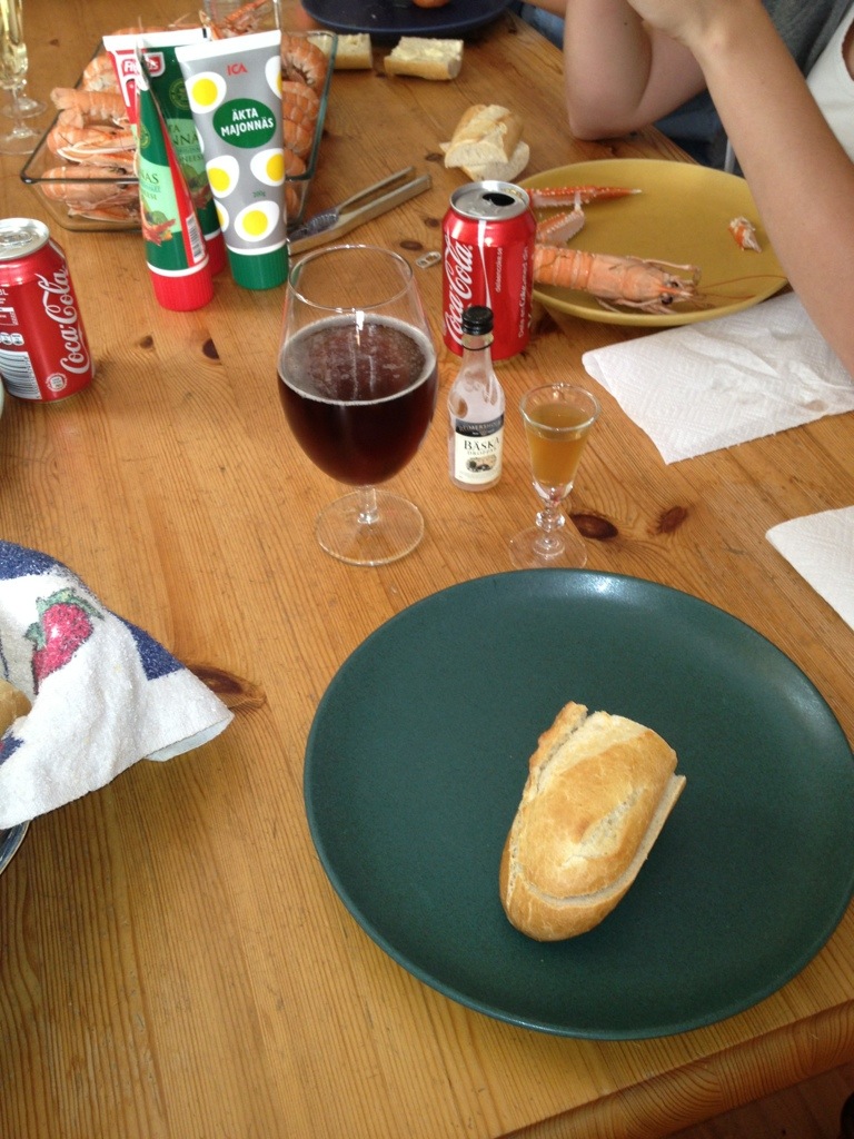 När vi kom hem så hade Kerstin kommit ner och hon hade varit ute och plockat björnbär. Nu skulle vi ha kräftskiva.