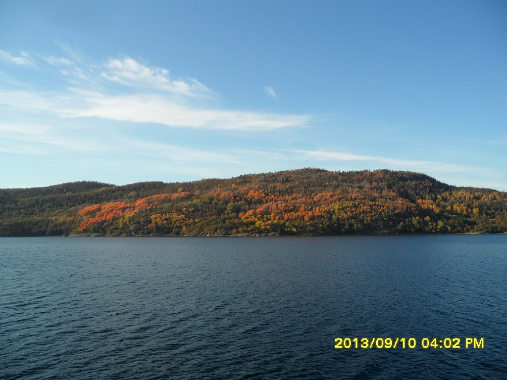 14:00 Kommer på vakt igen och sätter mig med lite kaffe. Vi passerar Bispeflua och går upp genom Gisundet. Hösten har kommit här.