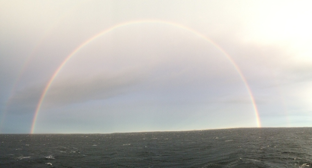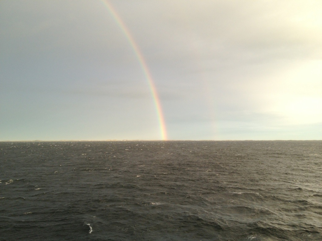 02:00 Kommer på vakt strax innan Ramsöysundet. Fortsätter söderut i skitvädret. 17-19 m/s och +14 grader och mulet.