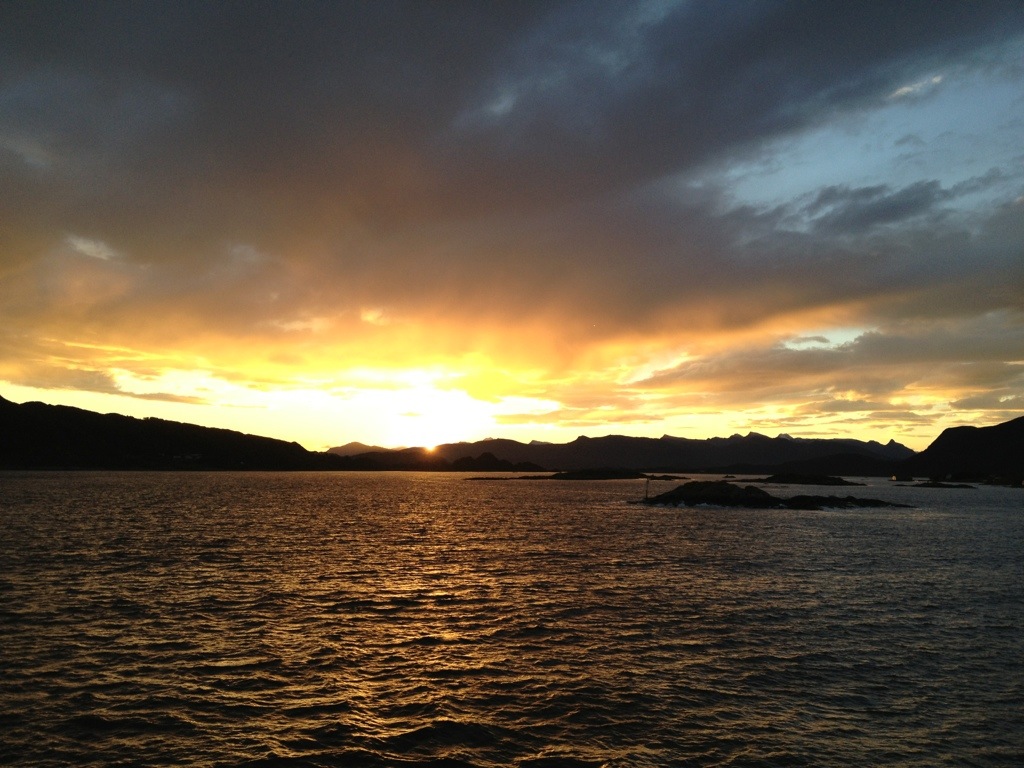 02:00 Kommer på vakt nere i Julsundet. Fortsätter sedan västerut över Lepsöyrevet och förbi Ålesund. Blir en ganska fin morgon ändå.
