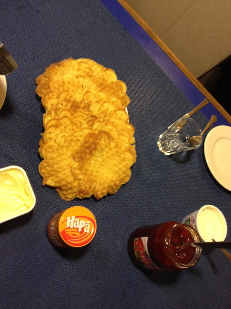 20:00 Går av vakten och bjuds på våfflor till kvällsmat.
