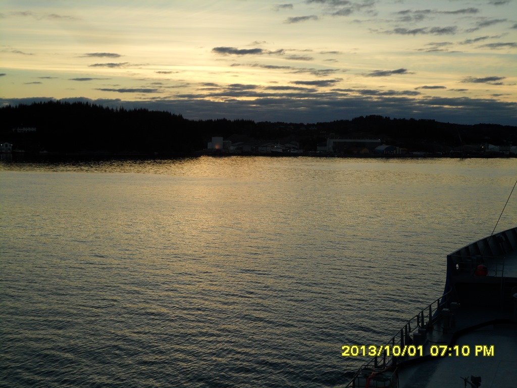 14:00 Kommer på vakt igen när vi passerat Haugesund. Fortsätter norrut och vid Leirvik blir vi passerade av Bergen Nordic. Pratar lite med Per och hör hur det går för dem ombord.