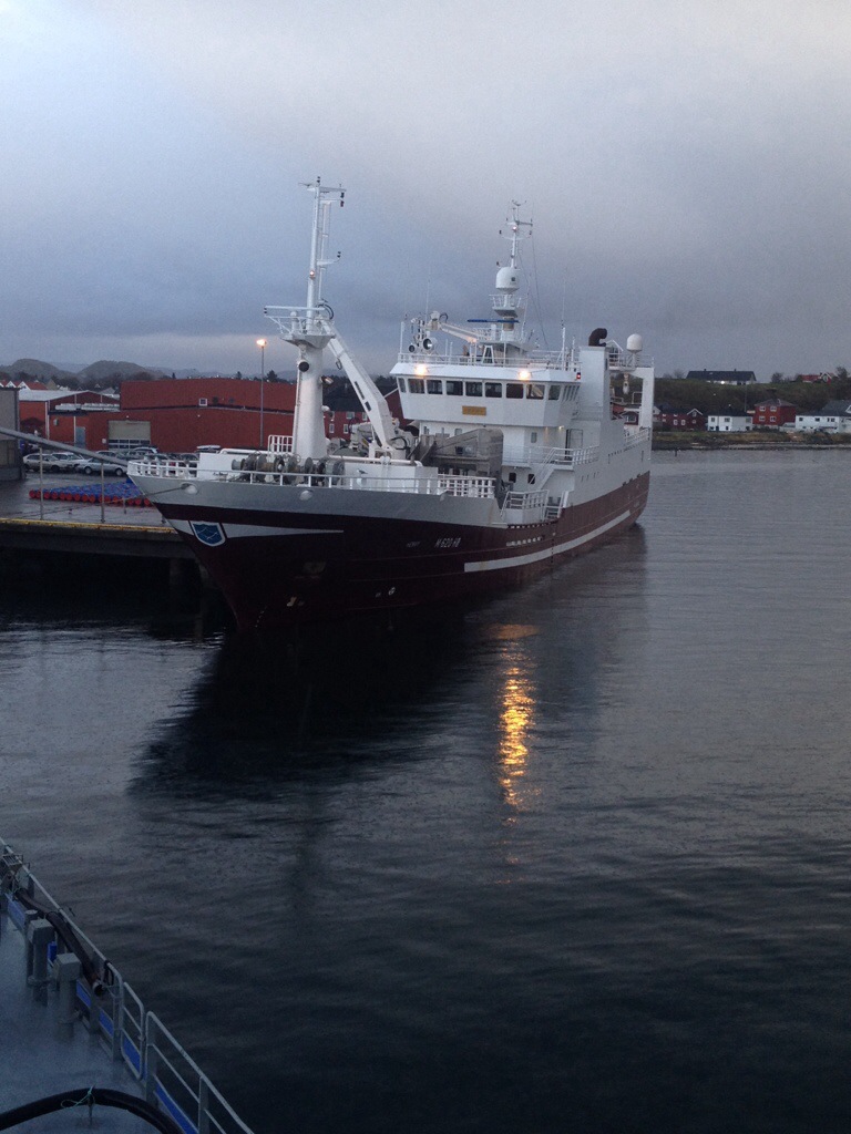 14:15 Framme på Uthaug och mönstrar på. De är färdig lastade så jag äter lite mat innan vi avgår.