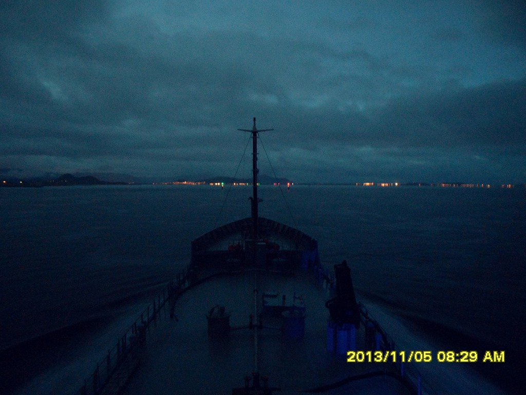 02:00 Kommer på vakt vid Hesteskjær ute på Hustadvika. Fortsätter västerut. Ner genom Saltsteinsleia och över Lepsöyrevet.