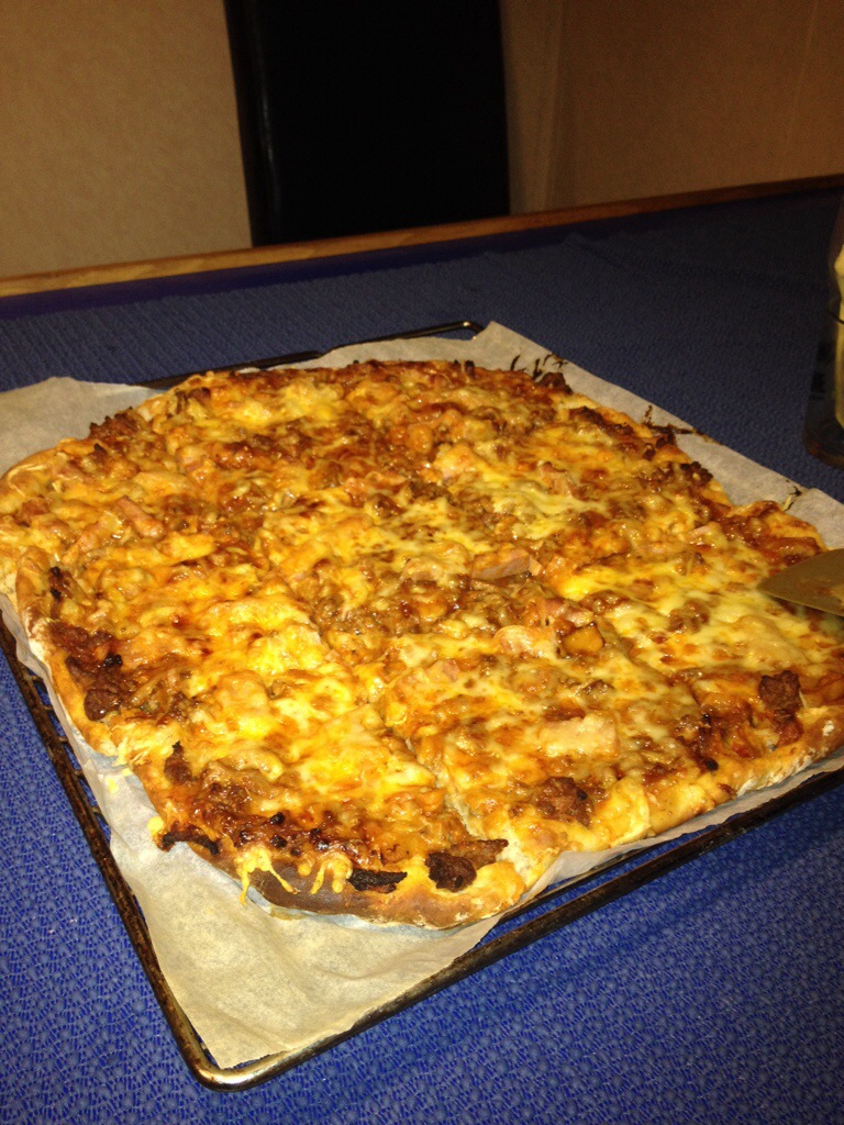 20:00 Går av vakten en stund efter vi passerat Polarcirkelöya Vikingen. Kommer ner i mässen där Bernt har lagat pizza till kvällsmat.