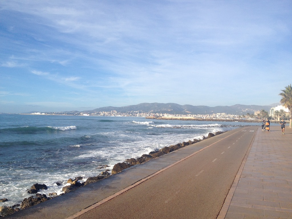 När det hade ljusnat lite så gav jag mig ut på en träningsrunda. Började med 2 km uppvärmning längs strandpromenaden.