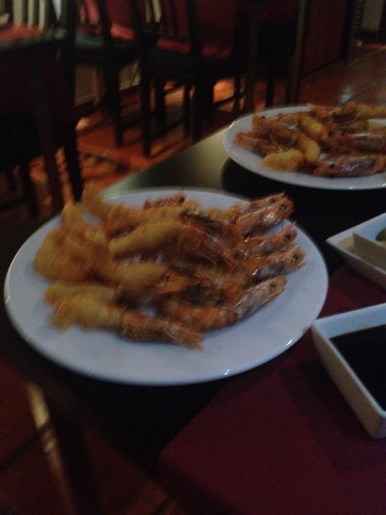 Till kvällen så gick jag och Harry upp för att äta en god middag. Det blev friterade räkor och bröd med aioli. ![]()