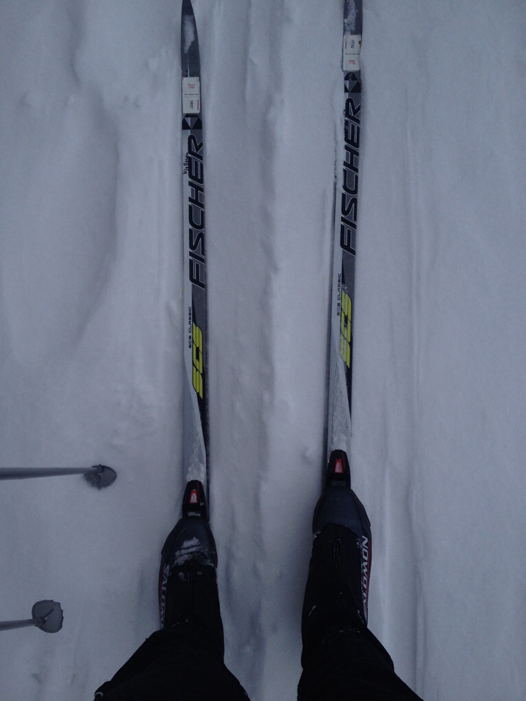 Så det blev att spåra själv på ett ca 4 km långt spår. När jag sedan skulle ut på andra varvet så hade spåren blåst igen. Så jag åkte bara två varv idag.