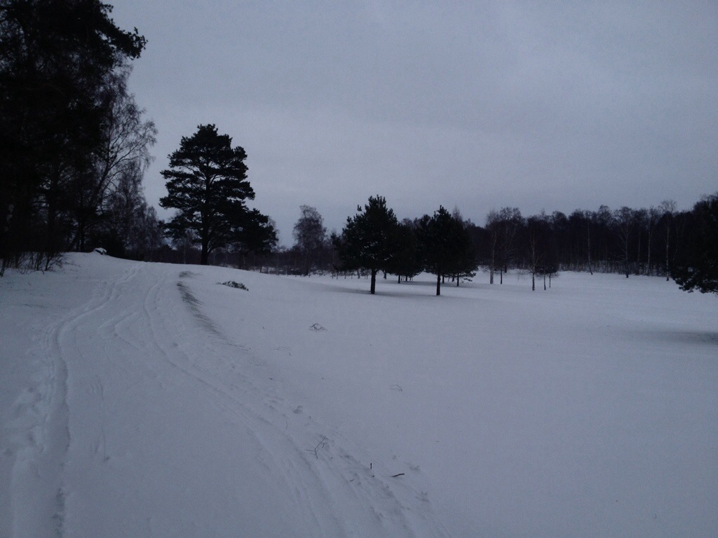 Även idag fick jag börja morgonen ned att skotta. Efter frukost så såg jag på tv och läste lite. Sedan gav jag mig av till Skrea Golfbana. De hade ju dragit spår förra helgen, men det var inte mycket kvar av det nu.