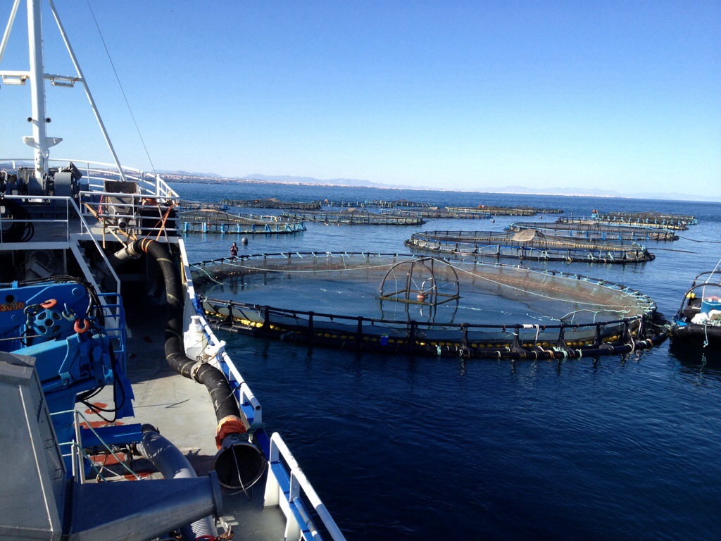 14:45 Förtöjda vid odlingen utanför San Pedro.