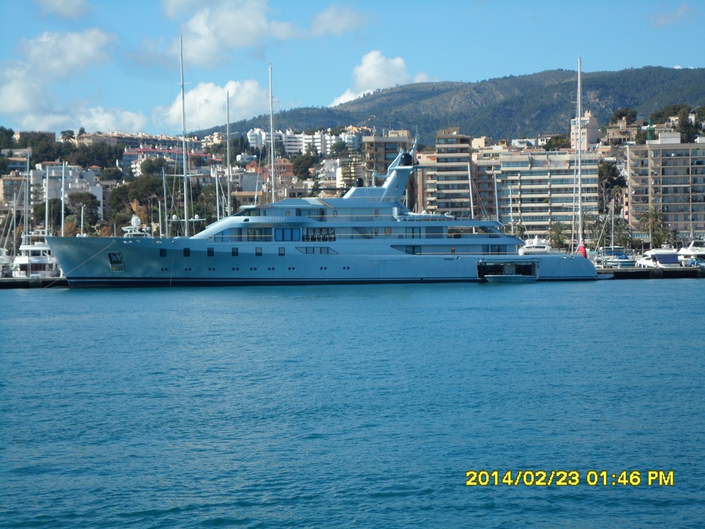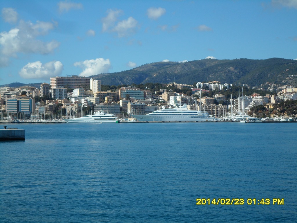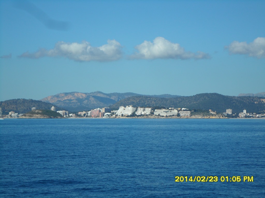 12:50 Förtöjda i Palma och jag skyndar mig ner för at se OS finalen i hockey mellan Sverige och Kanada. Men det slutar med förlust. Så jag tar och springer en runda längs stranden i solskenet. Det blev 11 km på 60 minuter.