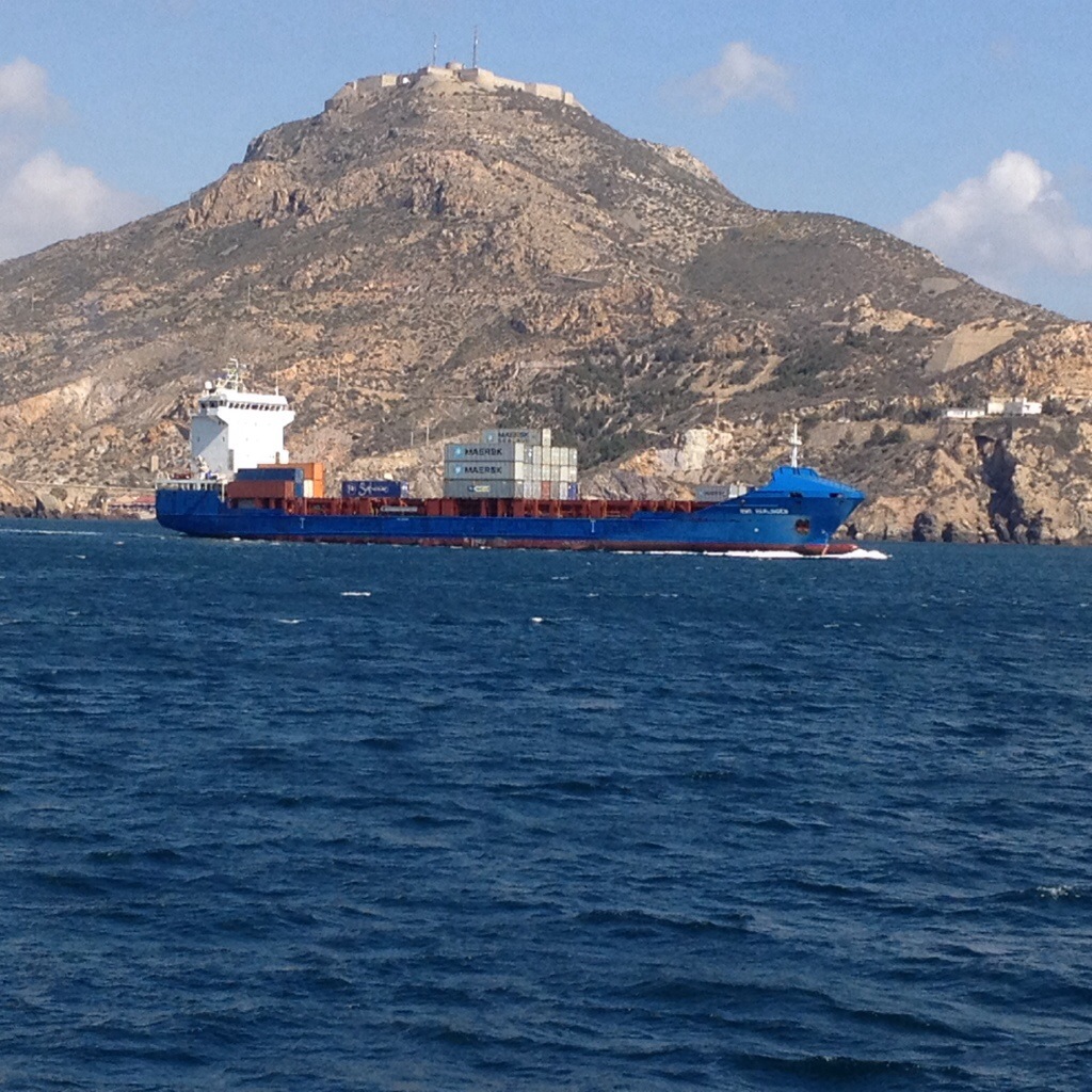 10:00 Avbröt lossningen pga för mycket vind och sjö. Går mot ankarplats vid Cartagena.