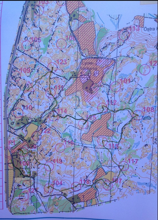 Vaknade vid 7 idag och låg kvar en stund innan jag väckte Oscar. Sedan gick vi och åt frukost. Efter frukosten så gick vi för att packa ihop väskorna och städa ur rummet. När detta var klart så samlades vi för genomgång av dagens tävling. Sedan packade vi ut sakerna i bilarna och åkte mot TC. Jag anmälde mig till en öppen bana och alla skulle ha gemensam start. Det var tryckt 26 kontroller på kartan och H18 skulle ta 24 kontrollen medan H14 skulle ta 17 kontroller. Så det gällde att komma ihåg hur många man tagit och välja väl så man fick en snabb slinga. Jag sprang Öppen 6 och skulle ta 14 kontroller.