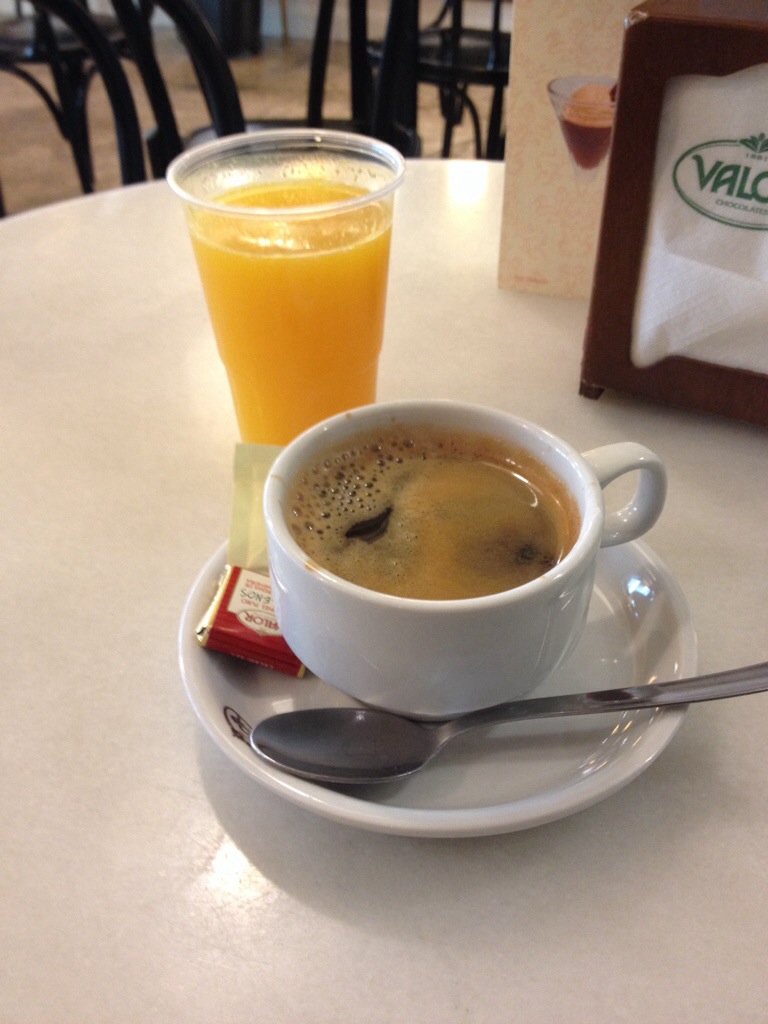 06:30 Taxi till flygplatsen. Kommer dit och checkar in. Sedan sätter jag mig och äter lite frukost och bjuds på ett väldigt gott nymalt kaffe och färskpressad apelsinjuice.