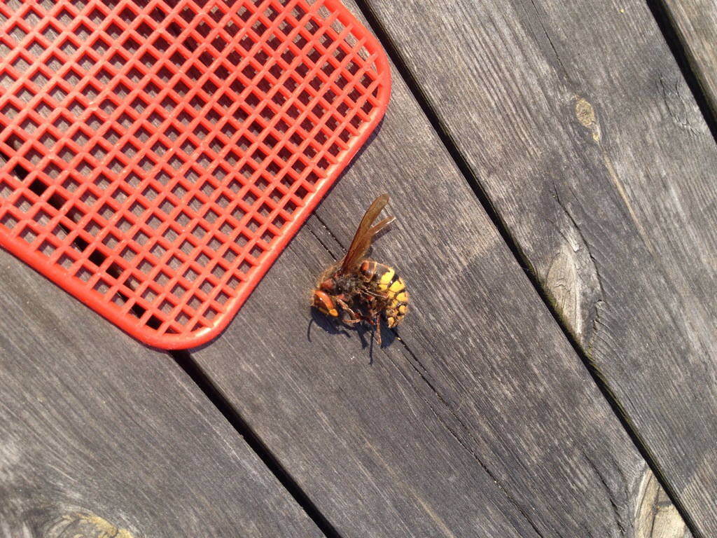 Vaknade till ännu en underbar och varm dag. Åt frukost och åkte sedan m för att handla lite. Britta kom ropandes när jag kom hem att jag skulle in och dräpa en jättestor geting i badrummet.