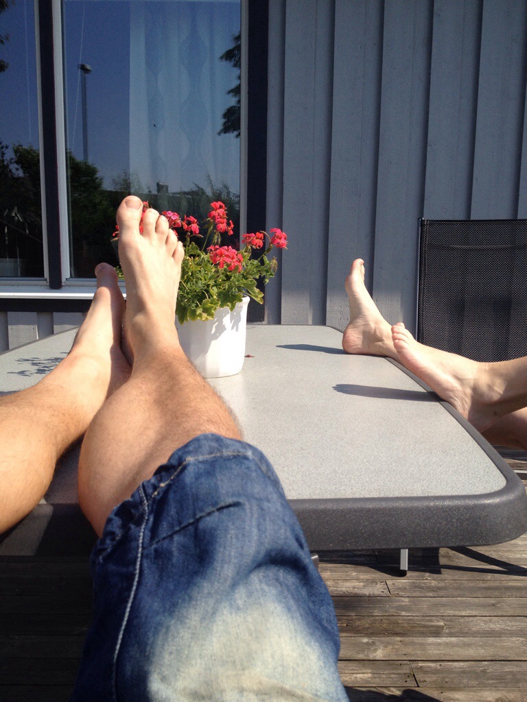 Duschade och hämta Linnea på stationen innan vi satte oss på altanen och tog en kall öl i solen.