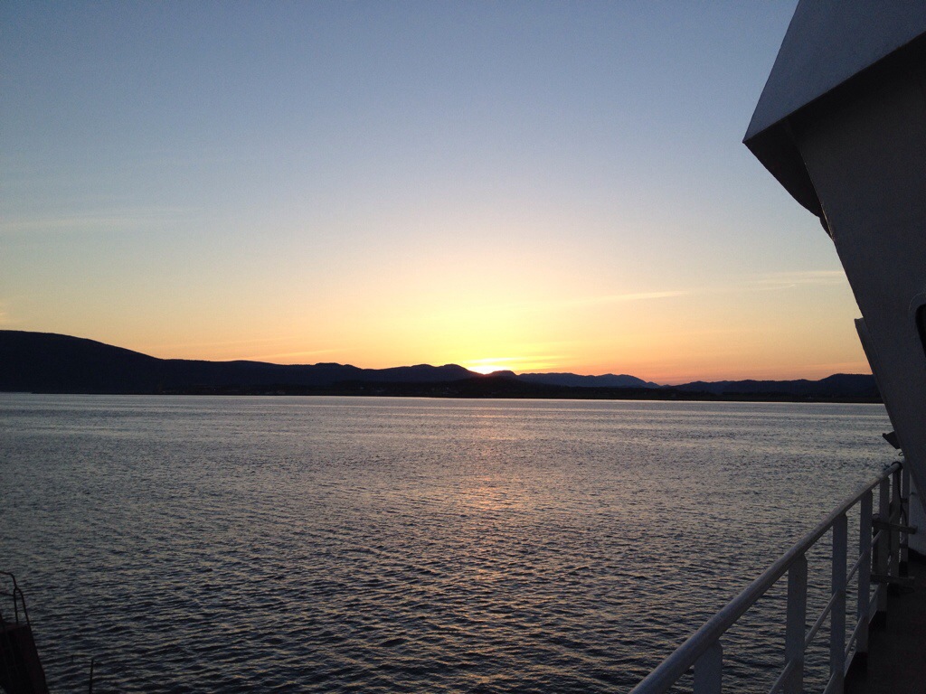 02:00 Kommer på vakt utanför Trondheim och vi går med reducerad fart för att vara framme vid 6 tiden.