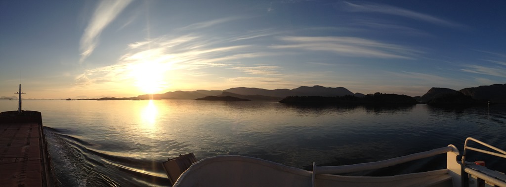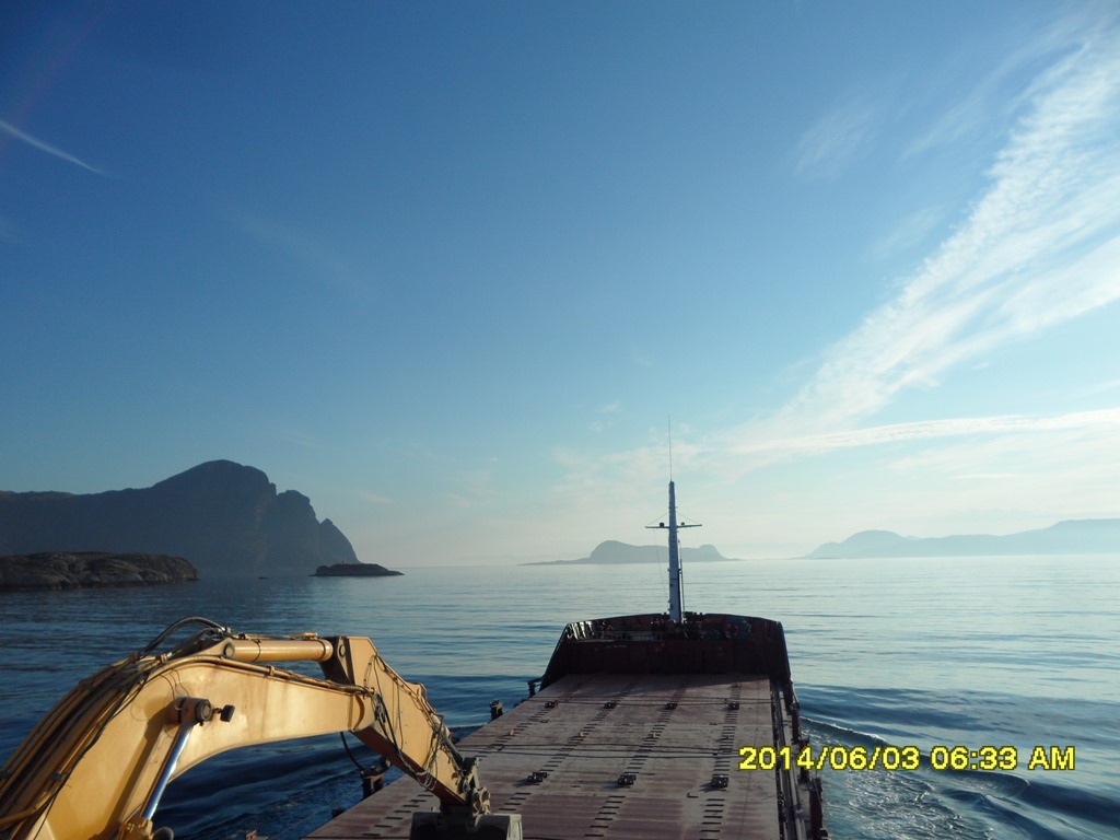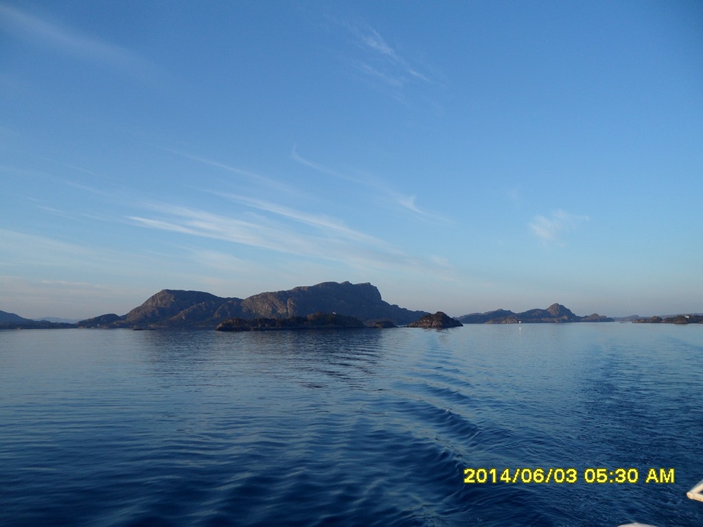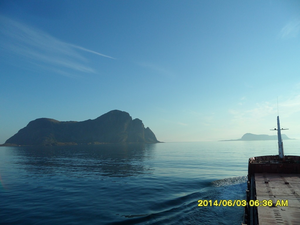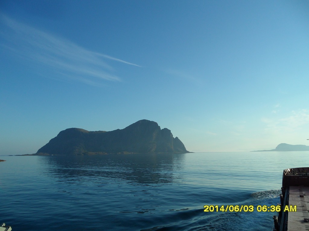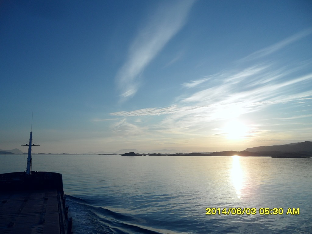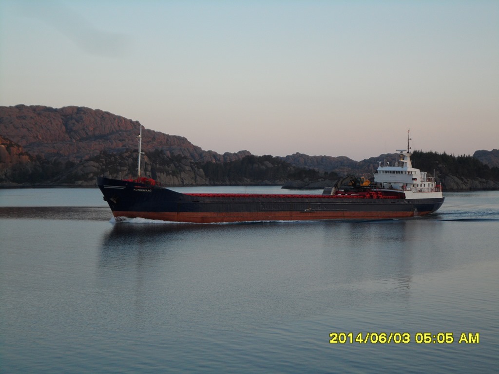 02:55 Färdig lastade och avgår. Går ut genom Fensfjorden och upp genom Steinsundet där jag möter Kongsvaag.![]()