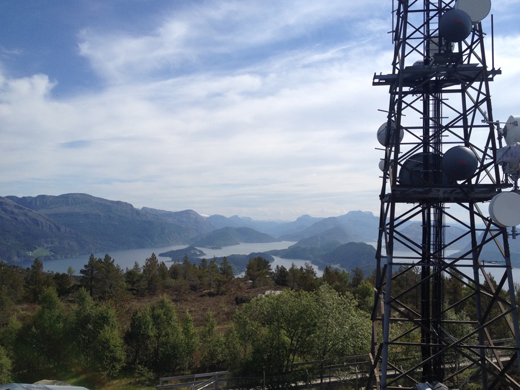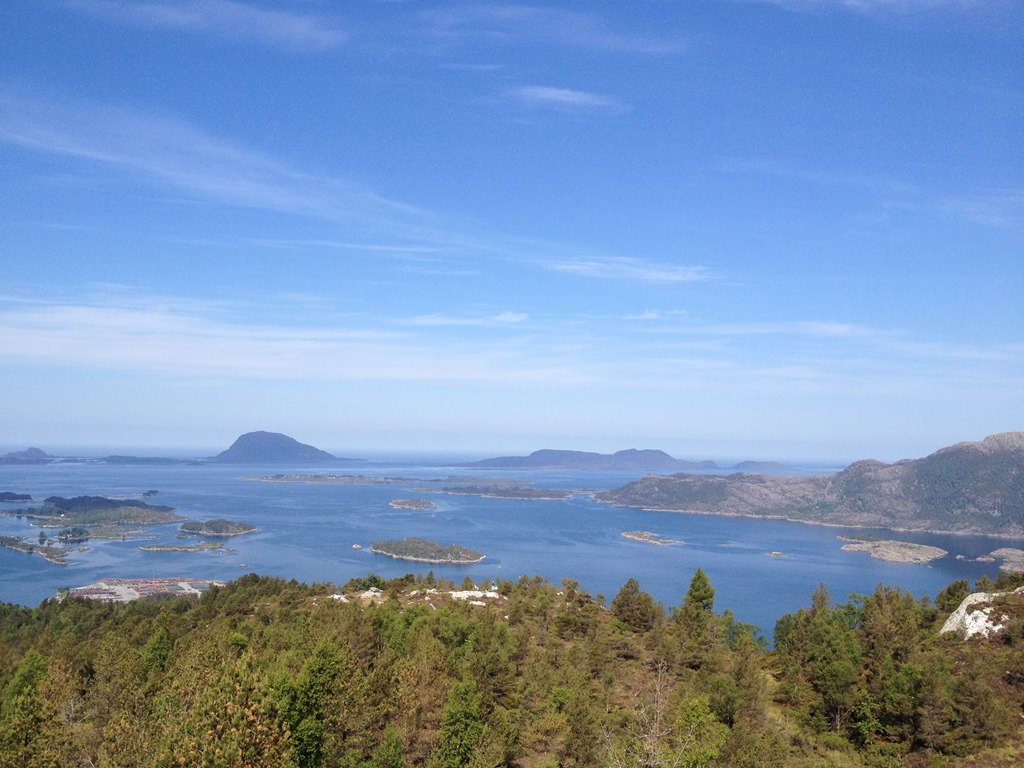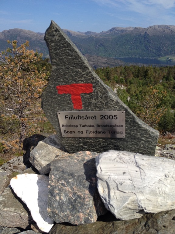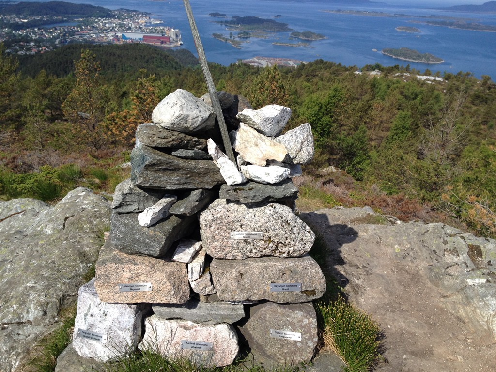 Möter en hel del folk som varit uppe på toppen i det fina vädret. Väl uppe på toppen som är 296 meter hög så är det en fin utsikt. Först ut mot väster och Florö samt flygplatsen.![]()