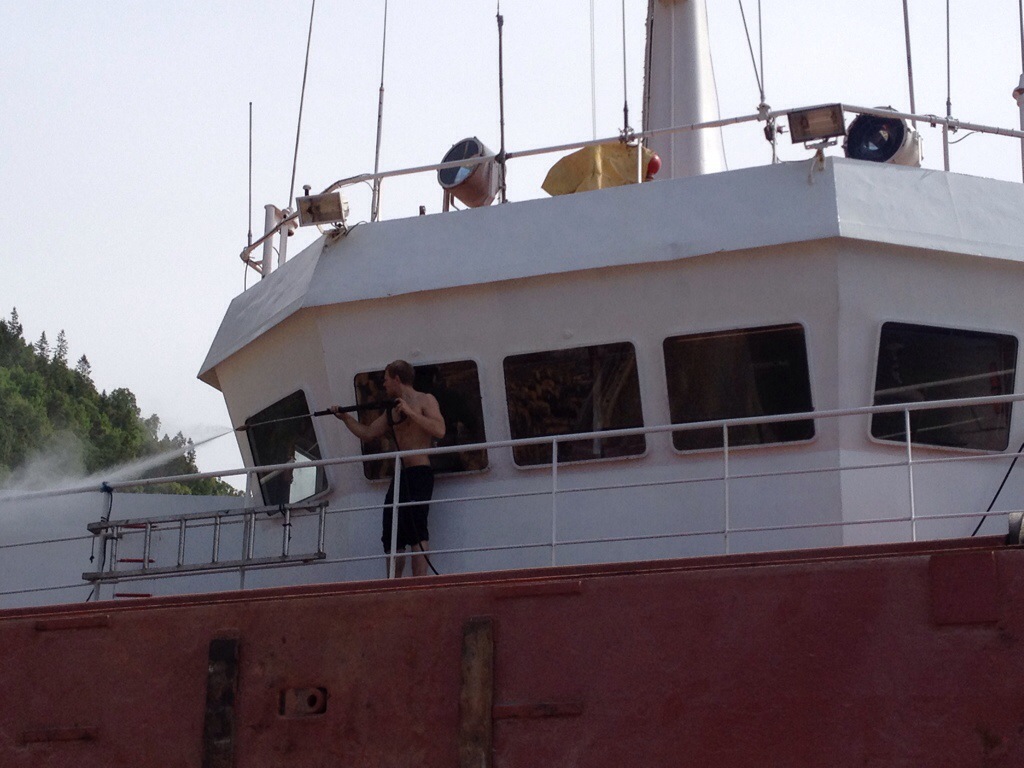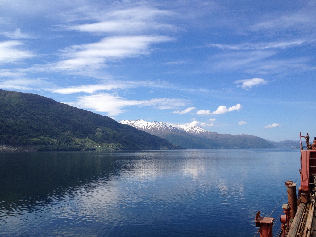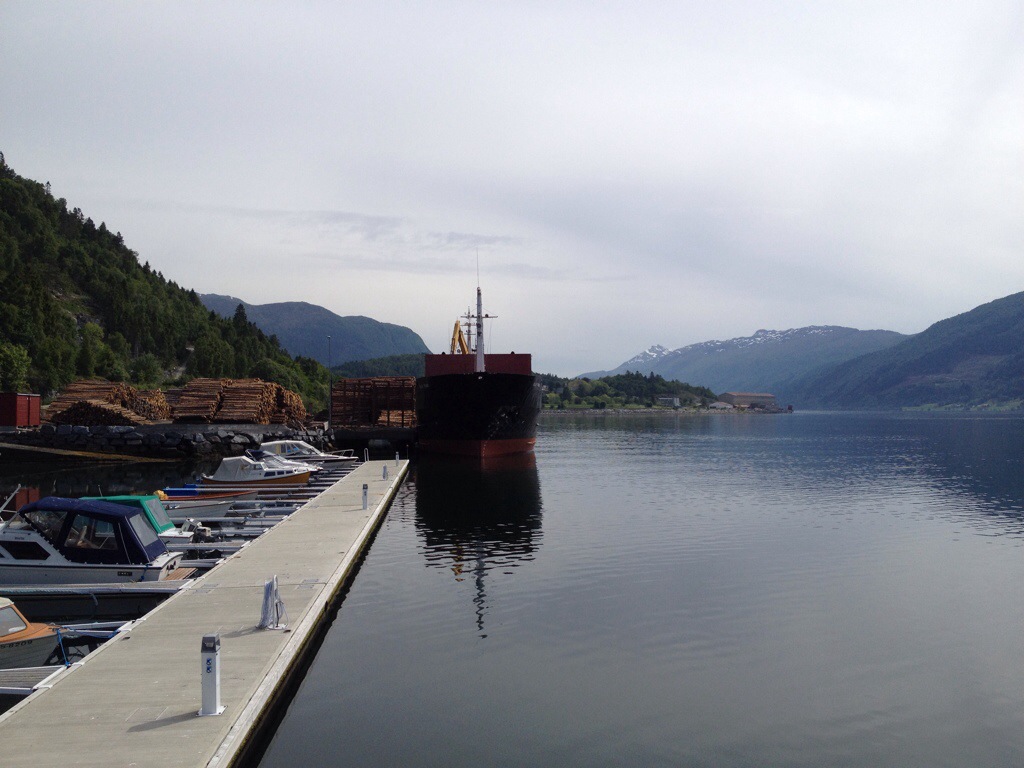 14:05 Färdig lossade och avgår. Vet fortfarande inte vart men vi går utöver i fjorden.
