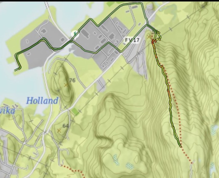 08:00 Går av vakten och tar mig en smörgås innan jag tar på mig träningskläder. Tänkte försöka hitta stigen upp till Dummolfjellet. Springer bortöver längs vägen och kommer lite fel i början men hittar till slut stigen upp. Det är väldigt brant och när jag har hållit på i ca 40 minuter så tänkte jag ge upp och vända tillbaka, men jag fortsatte ändå. ![]()