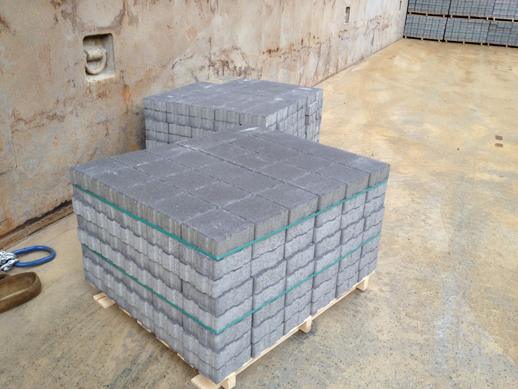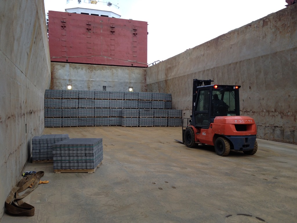 15:30 Börjar lasta pallar med sten. Vi skall lasta ca 700 pallar med marksten.