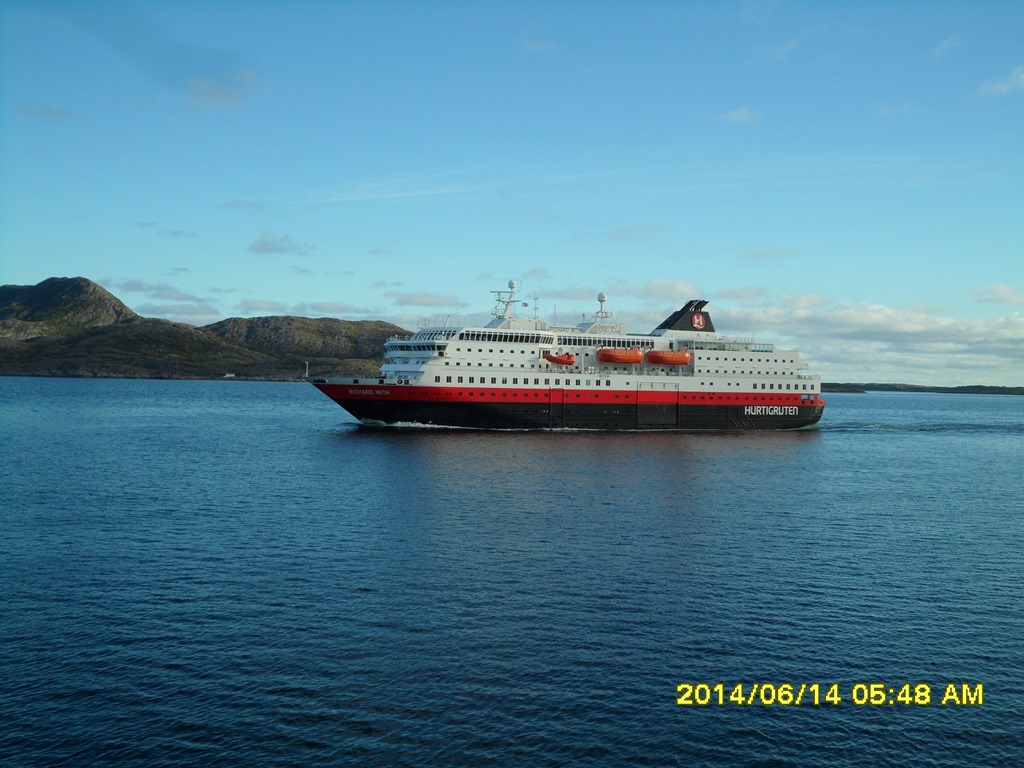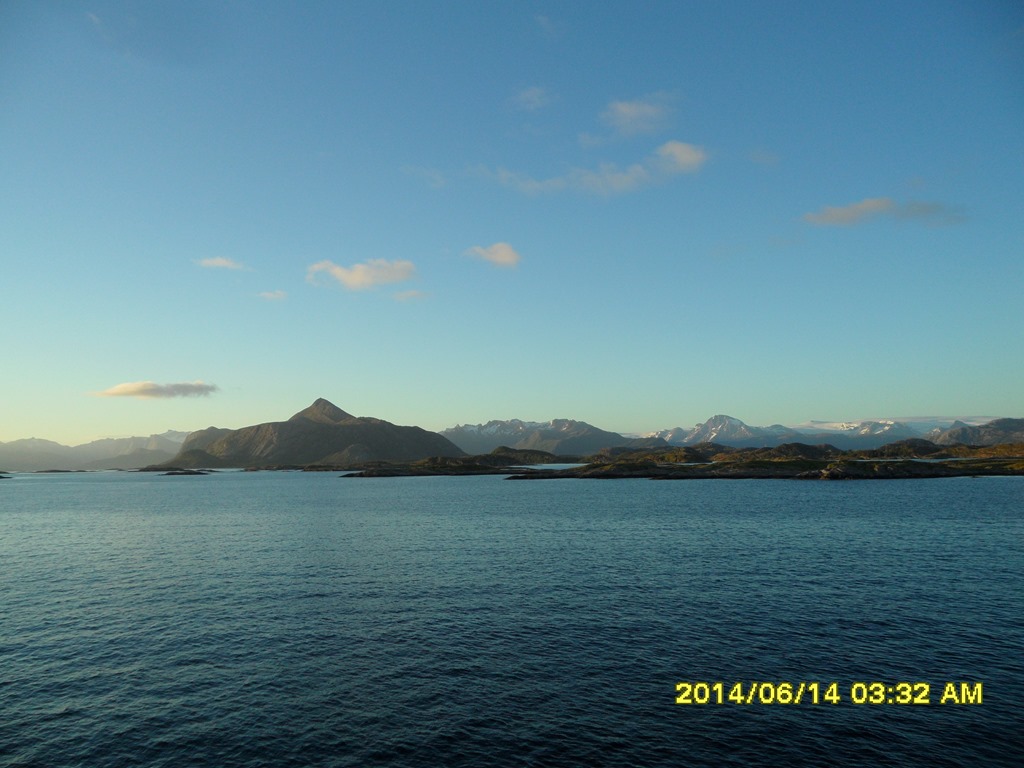 02:00 Kommer på vakt efter att vi passerat Polarcirkeln. Stilla och fin morgon på väg mot Bodö.