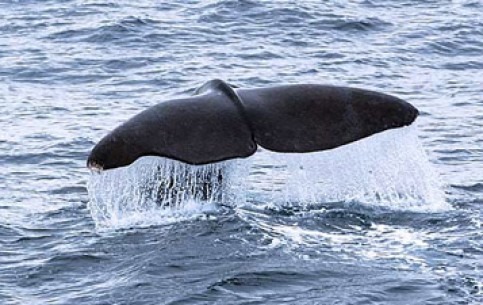Får se en stor val som är uppe och sedan dyker ner igen.