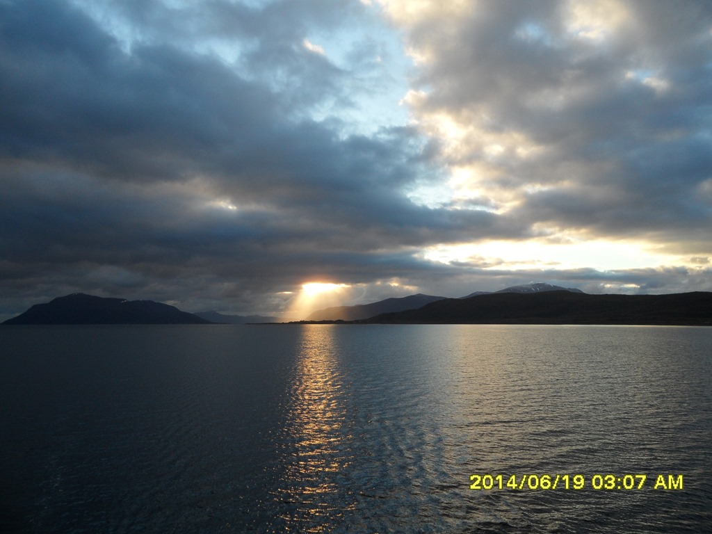 20:00 Går av vakten när vi kommit över Vestfjorden.