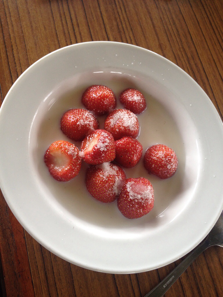 Ja det är ju midsommarafton och familjen har skickat bilder på hur de äter matjessill och jordgubbar. Så jag får inte vara sämre.