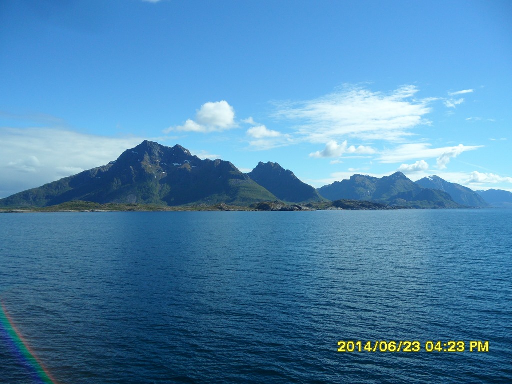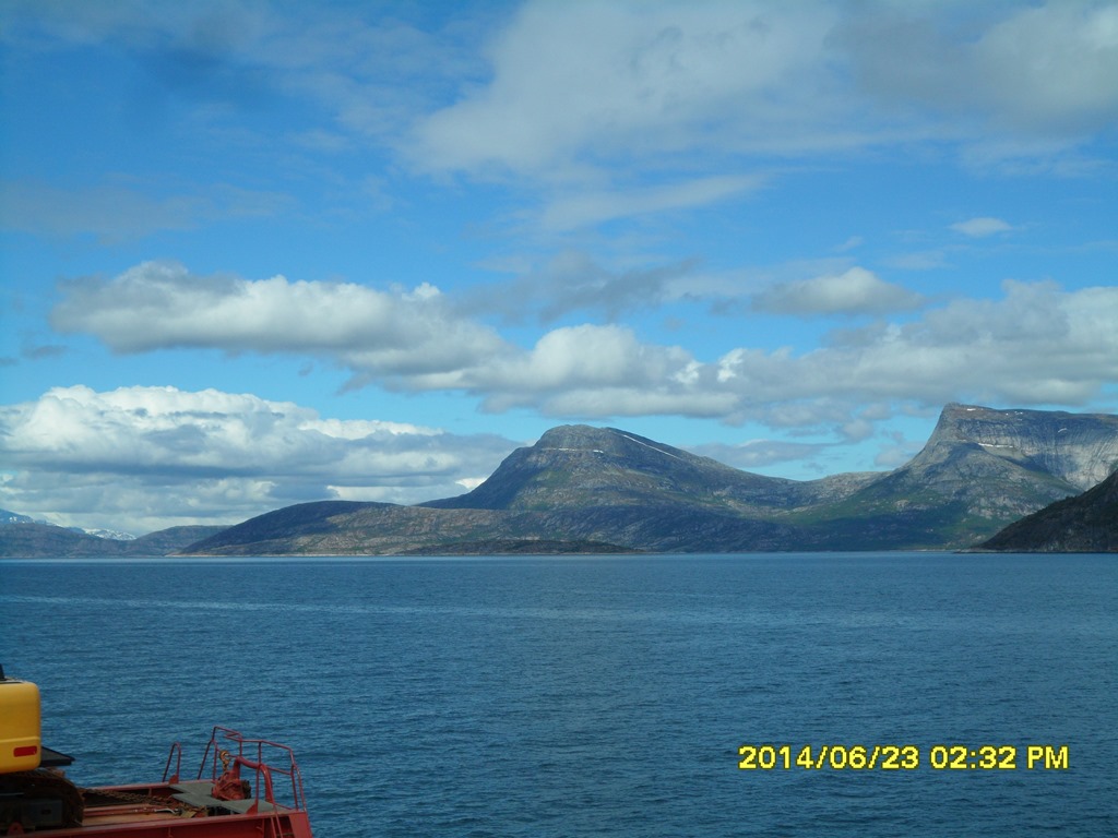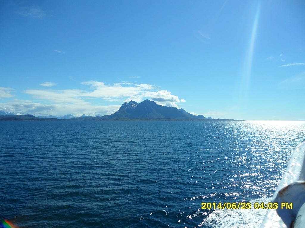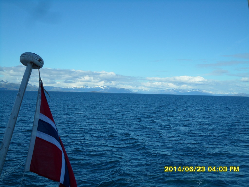 14:00 Kommer på vakt och fortsätter ut genom Tysfjorden i fint väder.![]()