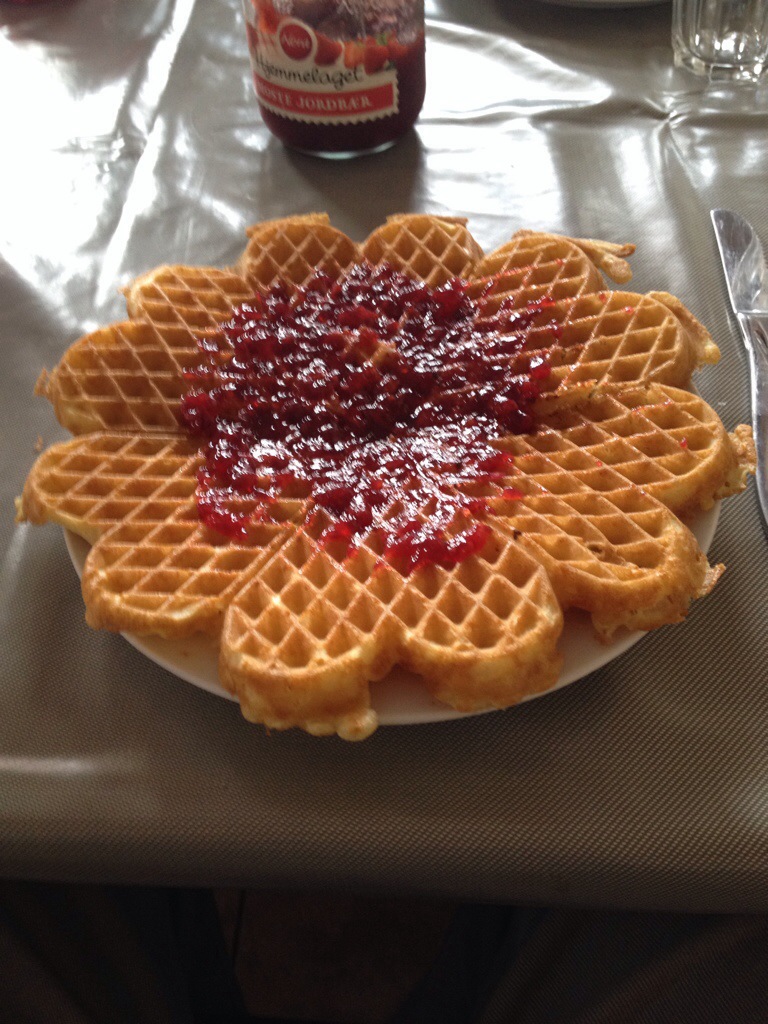 08:00 Går av vakten och bjuds på våfflor till frukost.