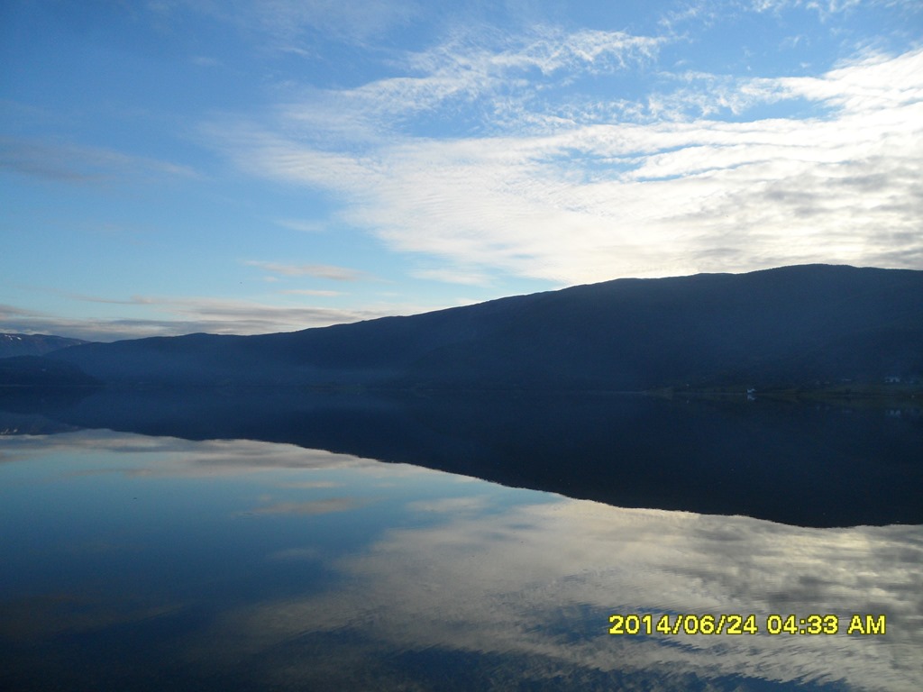 02:00 Kommer på vakt och vi har passerat genom Saltstraumen. Vi går vidare in i Misvaerfjorden.