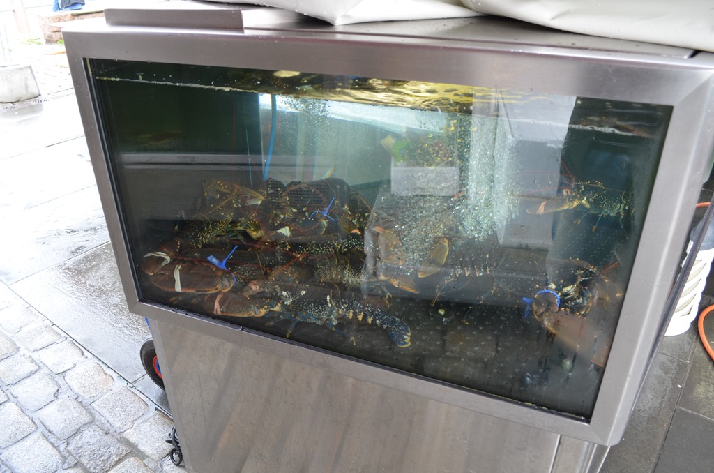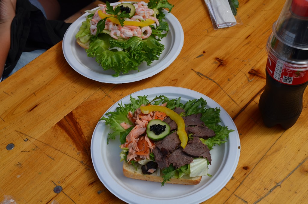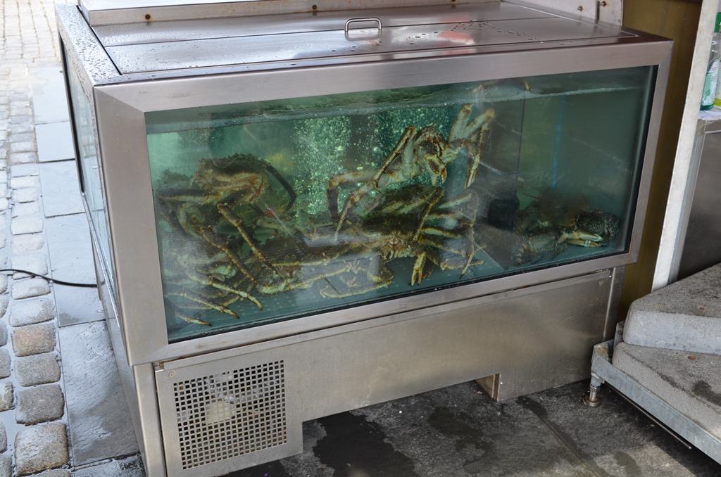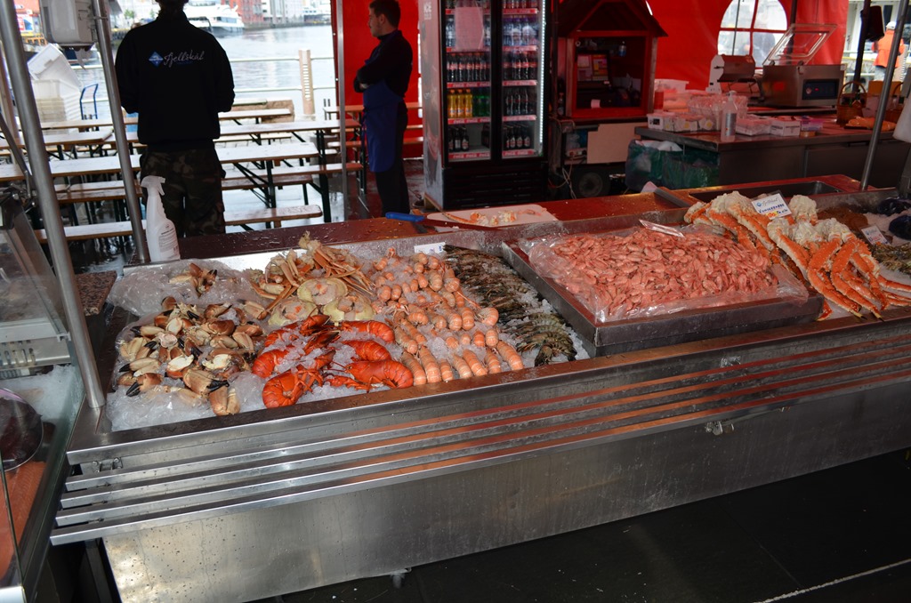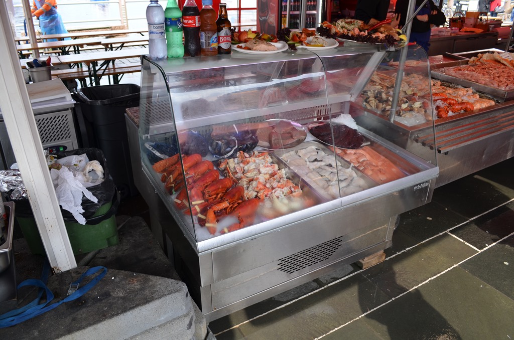 Därefter åkte vi ner igen och gick till fisketorget för att äta lunch. Det är ju inte det billigaste men man måste ju visa en så fin plats med all levande fisk och hummer. Vi åt varsin macka med lite olika fisk och skaldjur på. Jag valde en med Lax och Valkött som var väldigt god.![]()