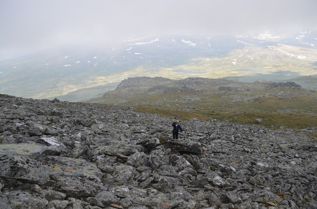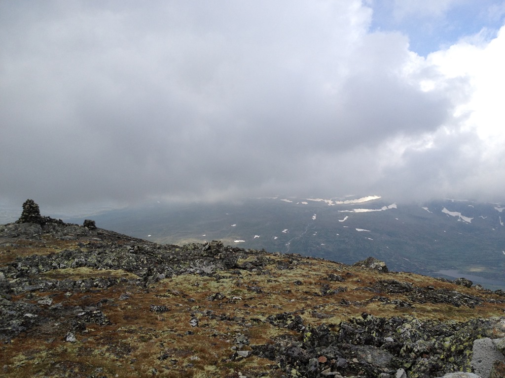 Britta och Oscar stannade på 1510 meters höjd eftersom det var så blåsigt och kallt upp mot toppen. Men jag fortsatte uppåt och när jag kom högst upp så klarnade det lite.![]()
