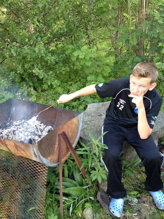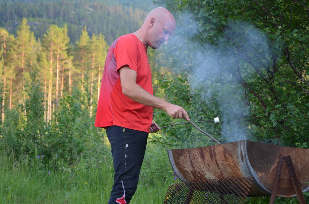 När korvarna var slut så grillade vi lite marshmallows.![]()