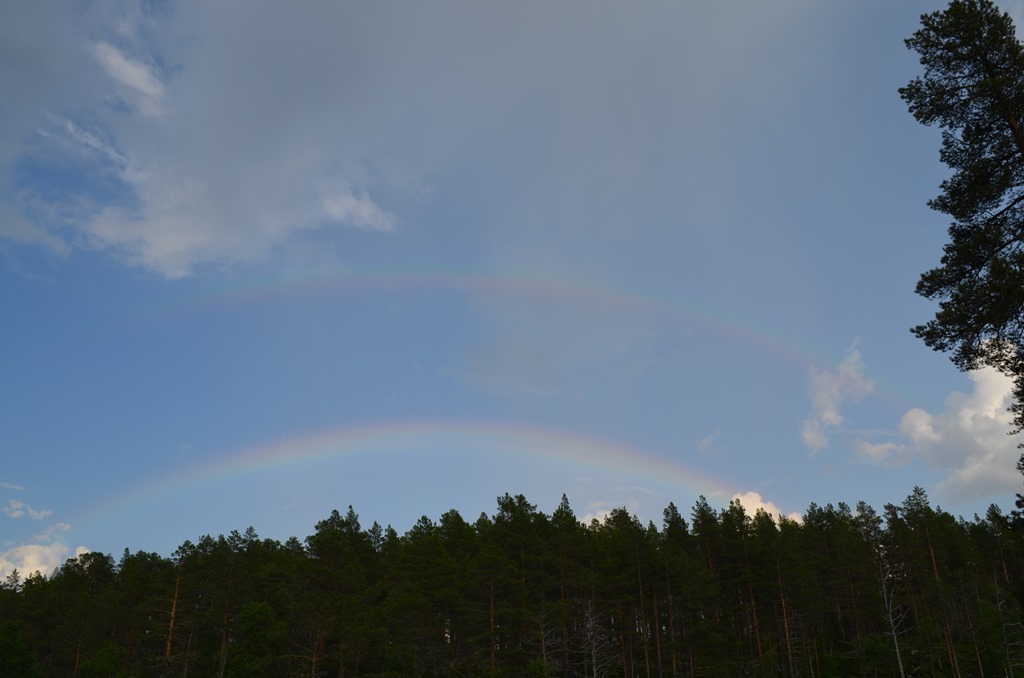 När vi sedan skulle grilla lite korv så kom det en regnskur och det blev 2 regnbågar.![]()