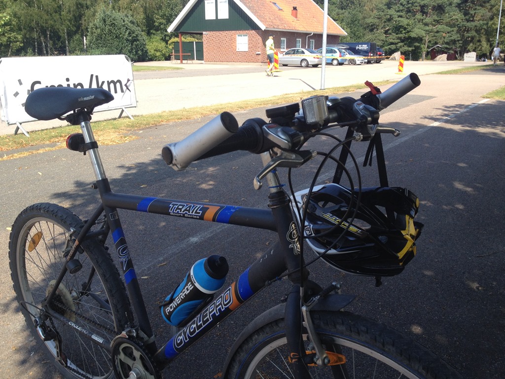 Åkte in på ICA och handlade för att sedan skynda mig hem med den. Tillbaka in till stan och tog cykeln bort till Nelsens för att lämna tillbaka sport identen vi lånat. Sedan bort till Tullbroskolan för att ha genomgång av banan och vilka som skulle cykla med respektive klass. Johan skulle cykla med första klassen och jag med andra. ![]()