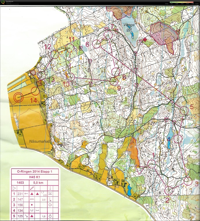 Vi var 6 stycken från klubben som valt att springa H45 Kort. Är ju alltid lite roligare när man är flera från klubben i samma klass. Jag gick bort till starten tillsammans med Peter Hagström och jag startade först. Efter startpunkten så tog jag bara sikte uppför backen och träffade stenen där 1:an låg.