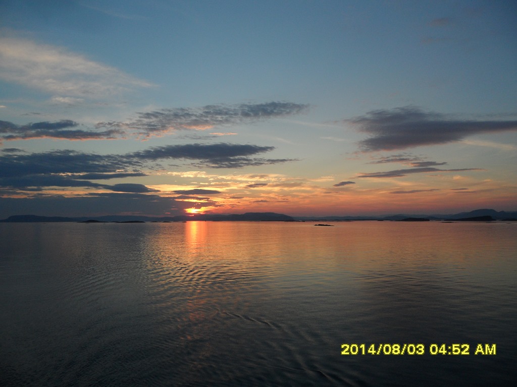02:00 Kommer på vakt norr om Stokköya och fortsätter sakta söderut. Stilla och fin morgon.![]()