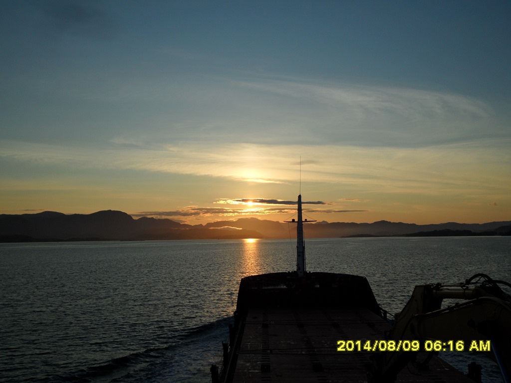 04:40 Färdig lastade och avgår mot Ålesund. Ännu en fin morgon längs kusten.