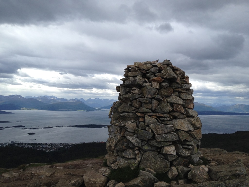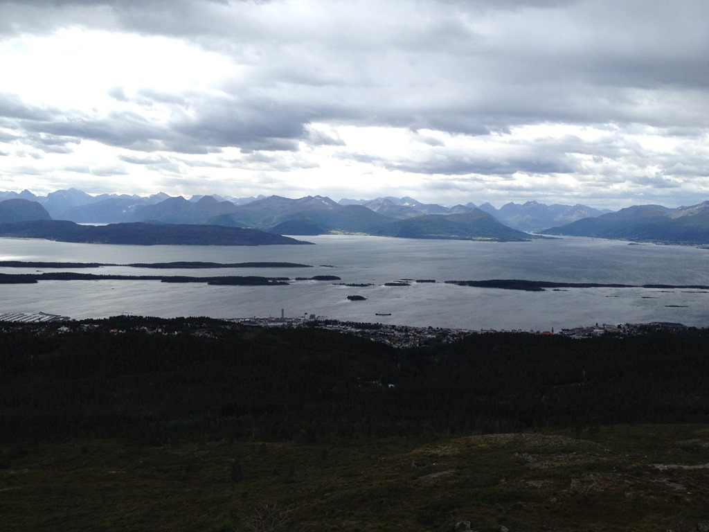 Utsikt över Molde, men det var väldigt blåsigt så jag skyndade vidare österut längs bergskammen.![]()