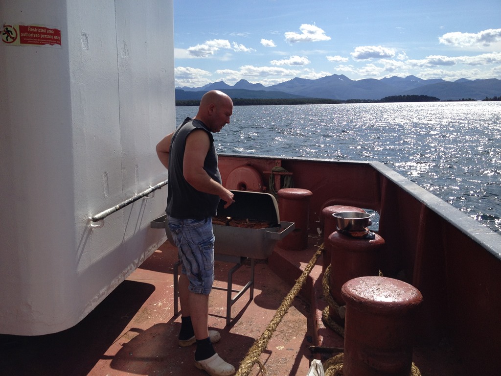 Kände hur det började lukta gott och gick ut för att se vad det var. Då stod kocken och grillade på akterdäck. ![]()