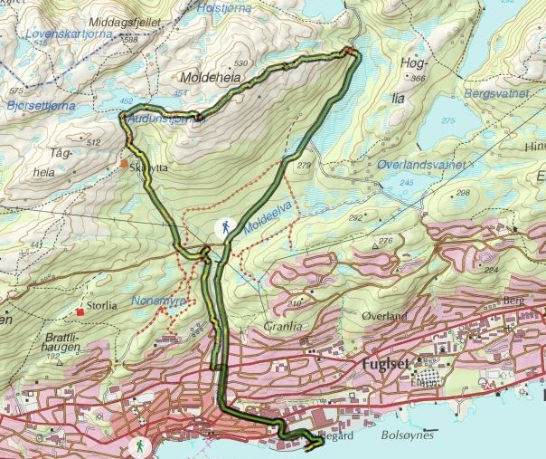 Ger mig sedan av upp mot fjället här i Molde. Ganska snart så börjar stigen upp mot fjället.