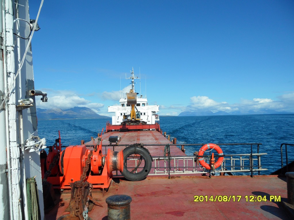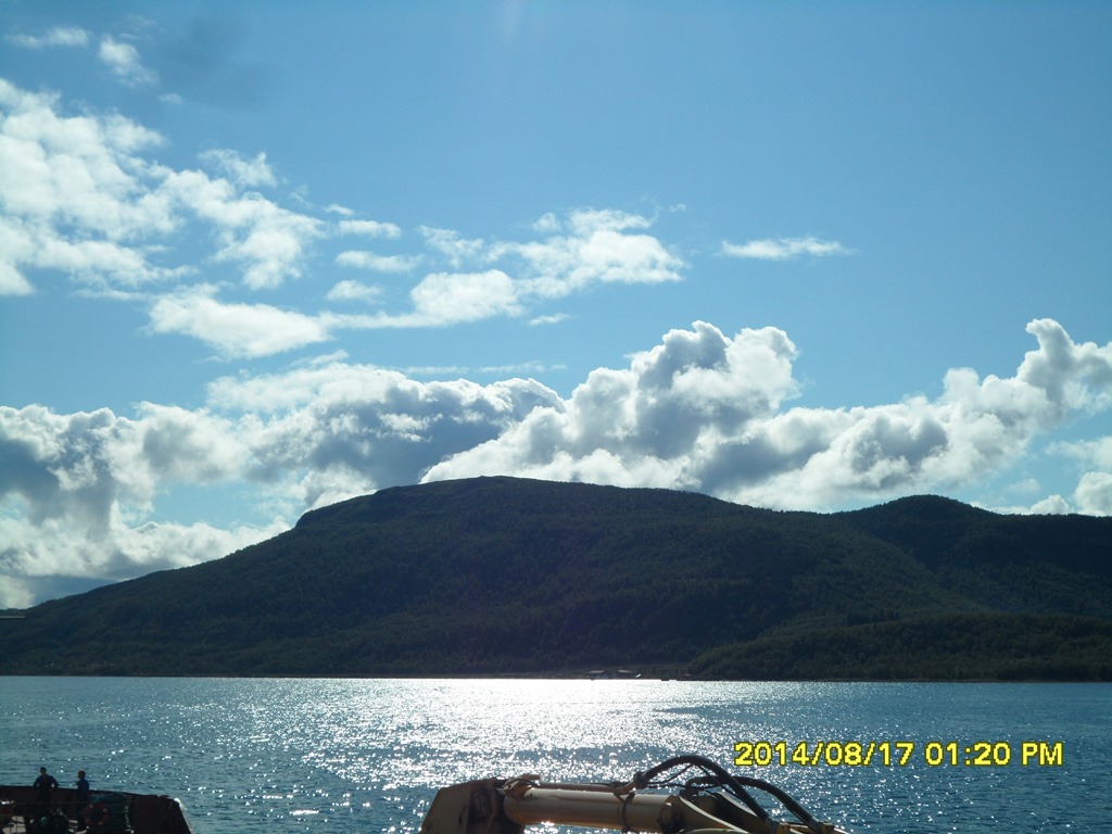 13:40 Förtöjda i Fjelldal eftersom vi inte får lossa i Breistrand innan 6 imorgon bitti och då kan vi inte ligga vid den kajen när det är lågvatten. Men härifrån är det bara 15 minuter över fjorden till Breistrand. Efter maten så går jag upp på bryggan och gör lite pappersarbete inför avmönstringen som närmar sig.