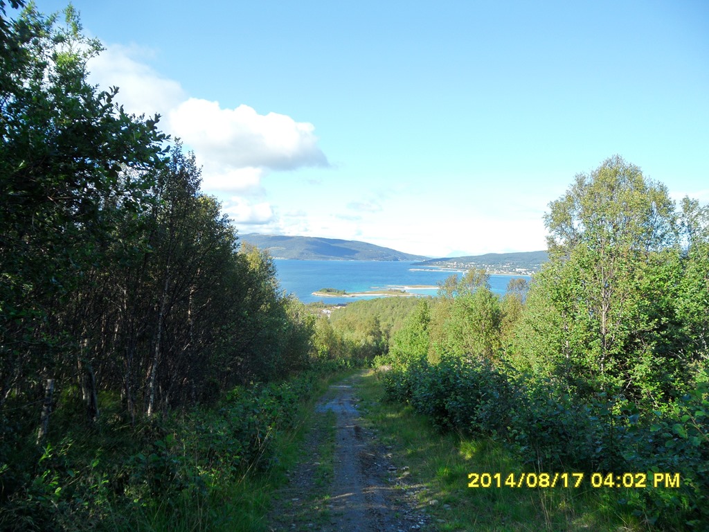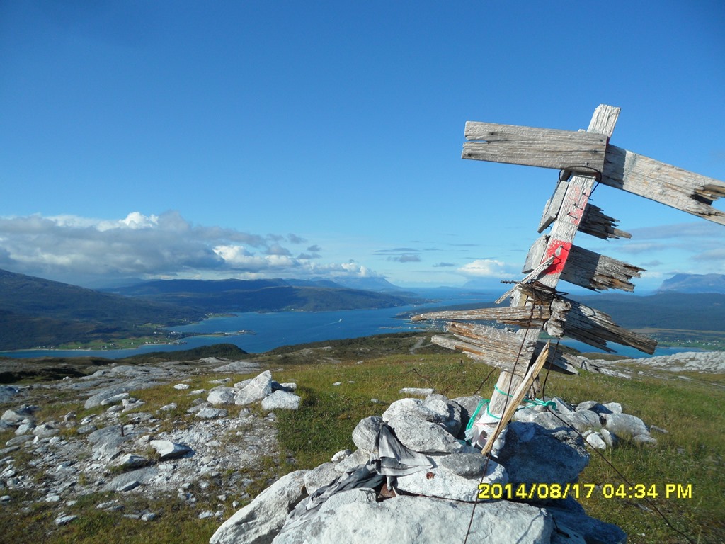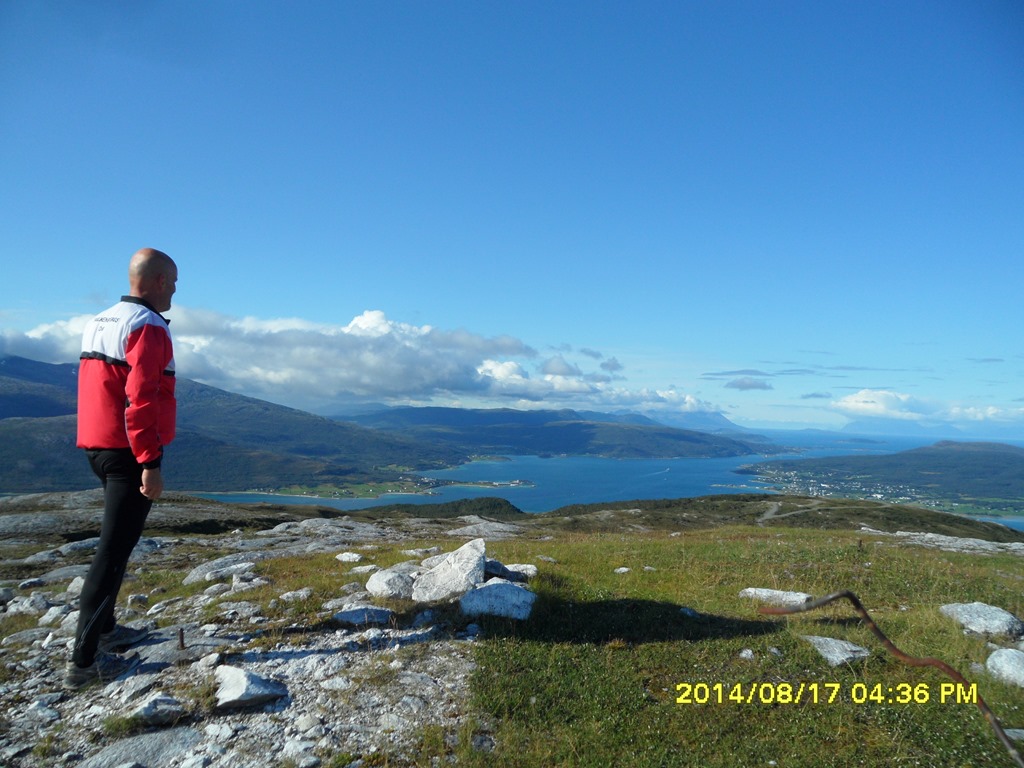 Kommer upp till toppen på 499 möh. Fin utsikt över Tjeldsundet.![]()