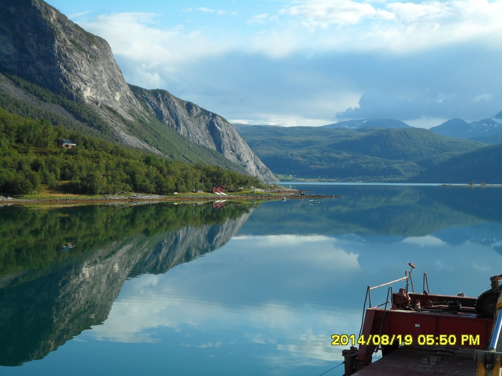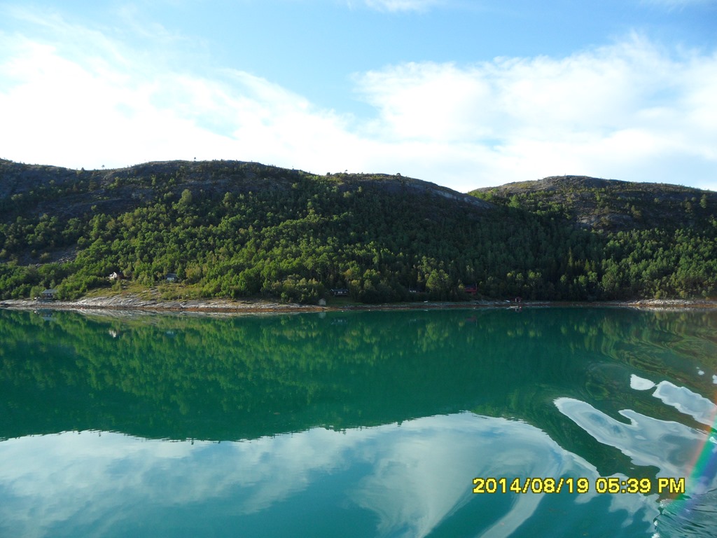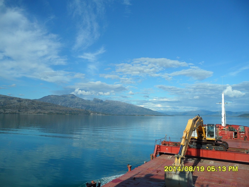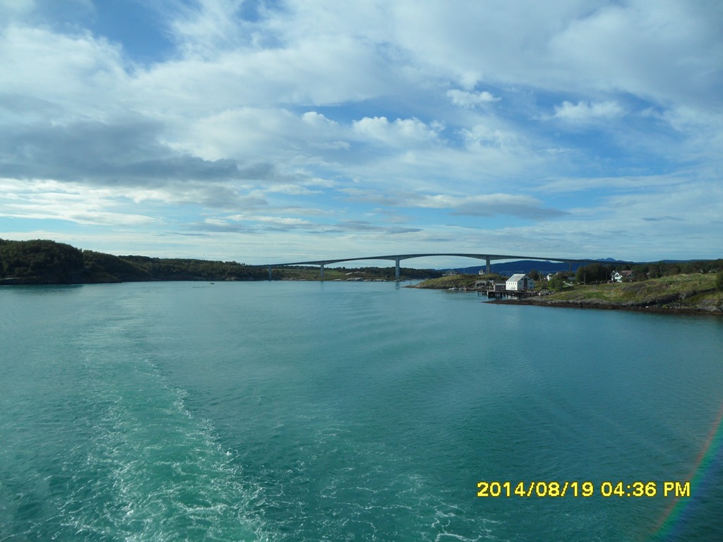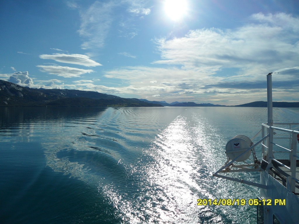 13:55 Färdig lossade och avgår med reducerad fart mot Misvaer innanför Saltstraumen.