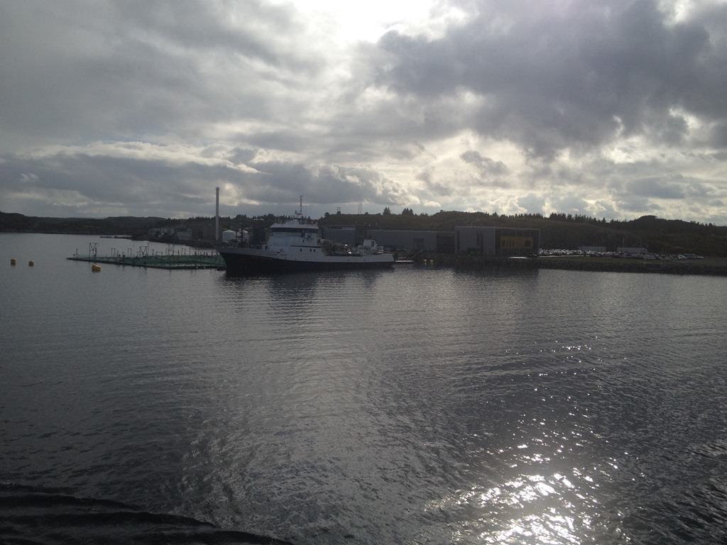 13:55 Förtöjda på Kverva och skall lasta lite laxolja.
