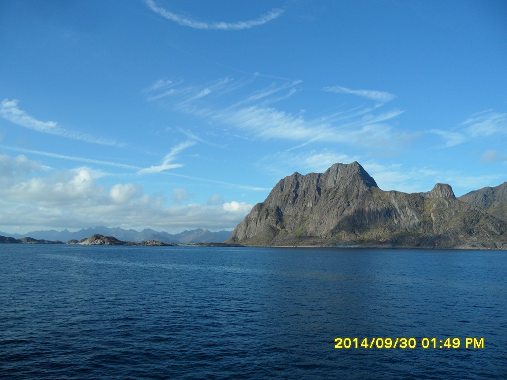 14:00 Kommer på vakt ute på Vestfjorden och närmar oss Lofoten i riktigt fint väder.