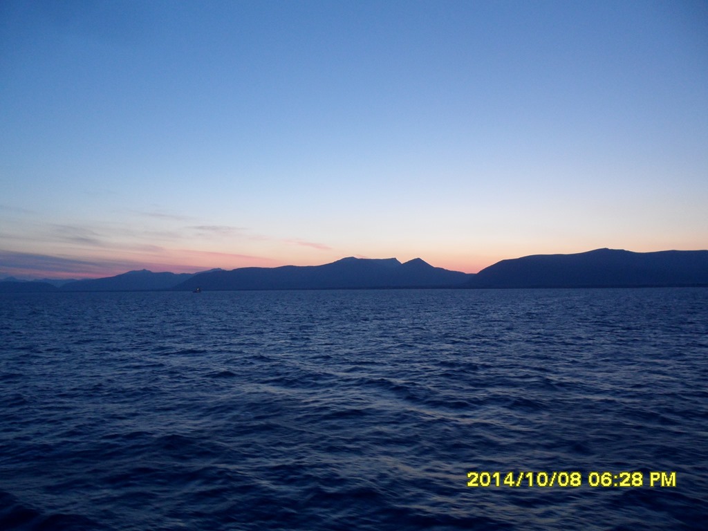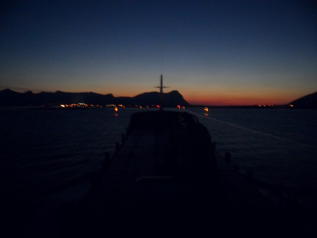 02:00 Kommer på vakt vid Andöybron och fortsätter vidare genom Risöyrenna. Vi går med reducerad fart för att vara framme på Andenes klockan 07.